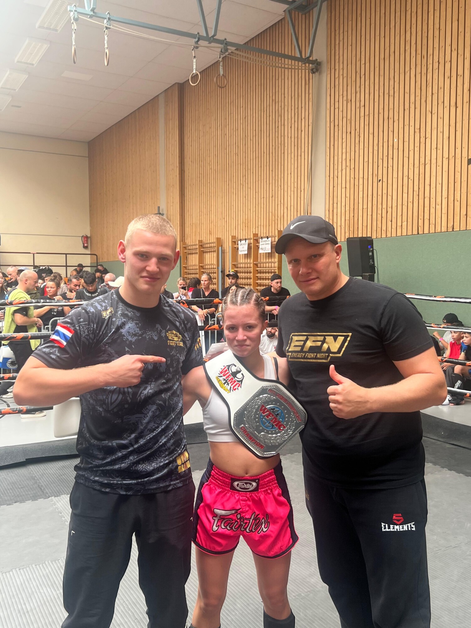 Unterstützt wurde Nia in der Ecke von niemand Geringerem als Michel Dirlenbach, Muay Thai Weltmeister des WBC, der ebenfalls unter Trainer Sebastian Schneider aus Möllmicke trainiert. Schneider konnte persönlich nicht dabei sein, ist aber mächtig stolz: Durch Nias Gewinn der deutschen Meisterschaft sowie Michels Gewinn der Weltmeisterschaft fühlt er sich in seiner Arbeit bestärkt und motiviert.